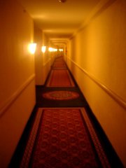 The modern hotel is a mammoth, sprawling fortress on a hill; its endless hallways are dim and silent and uniform except for the temporal, scattered remains of room service left outside a door. If we see anyone at all — and this is rare, although we have been told the hotel is fully occupied — we hurry past with downcast eyes, sullen and vaguely ashamed; we never want to be remembered for having set foot here.
