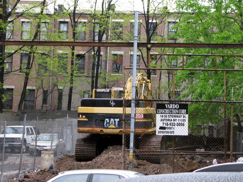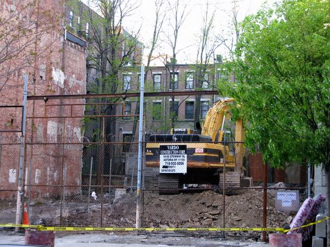 And then! A quick jaunt to the Department of Buildings revealed that a permit has been issued for the construction of a brand-spanking new 17,000 square-foot/18-unit apartment building. Which seemed to prove that we weren’t in fact hallucinating! Plus the bulldozer was still there this afternoon on our way home from work.